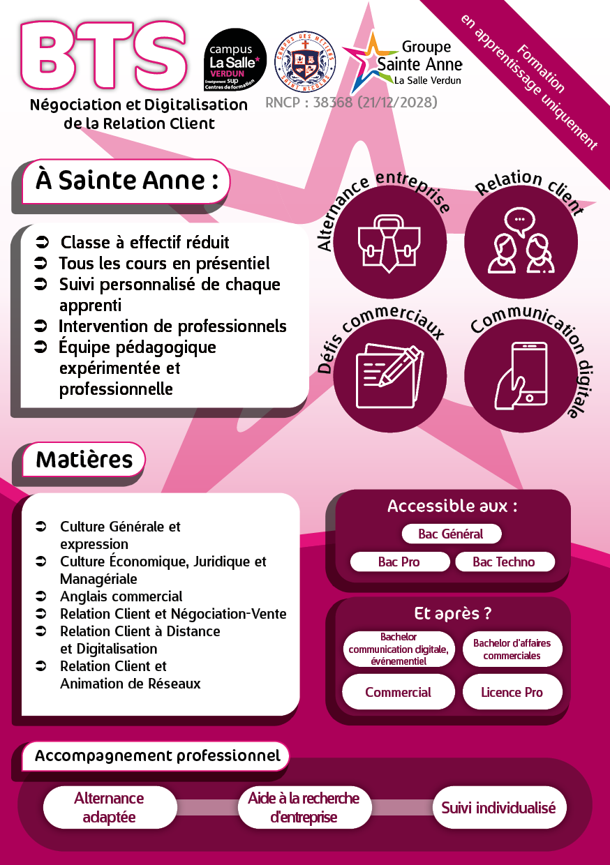 Ce BTS commercial est idéal pour ceux qui aiment la vente et la relation client. Apprenez à travailler en entreprise, à convaincre et à fidéliser des clients via l’utilisation d’outils digitaux. Préparez-vous à être à l’aise à l’oral, curieux et capable d’argumenter. Apprenez dans de conditions optimales grâce à un suivi personnalisé de notre équipe pédagogique.